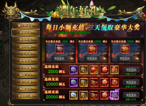 活动说:每日充值可以领取充值宝箱,连续三天充值更有额外专业品牌奖励
