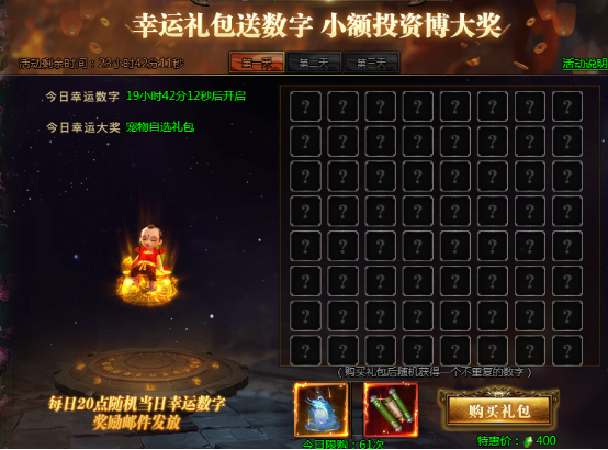 活动说明:购买礼包获得幸运数字,即可参与超级大奖