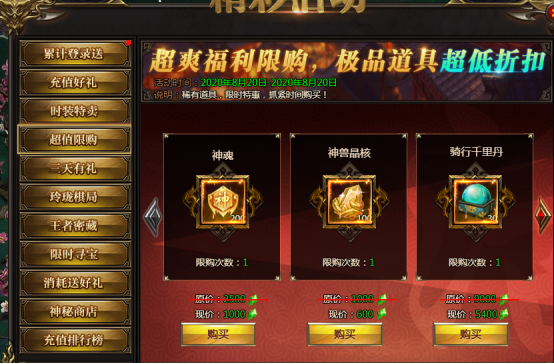 活动说明:各种稀有道具限时购买