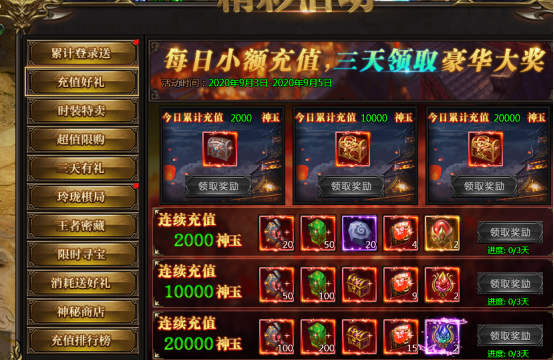活动说:每日充值可以领取充值宝箱,连续三天充值更有额外专业品牌奖励