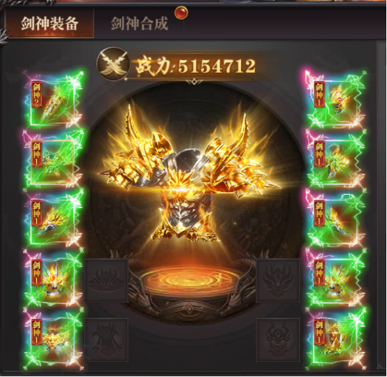 ①剑神装备总共14个部位,分别为剑甲和8件首饰,剑神内饰4件,剑神装备可通过剑修装备合成获取