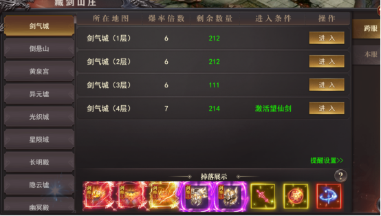 ②激活对应神剑可获得特殊属性加成以及万剑冢地图