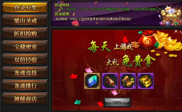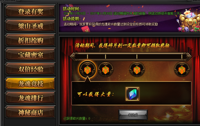 活动期间,玩家获得龙魂碎片将会计入数量,当达到一定的数量后即可领取奖励