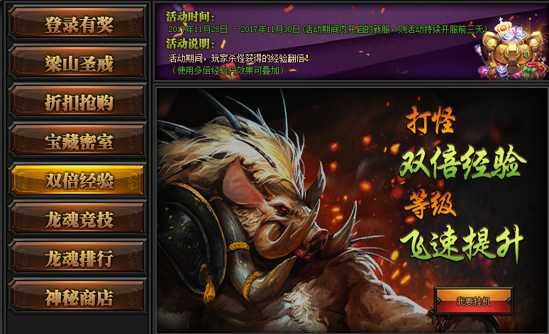 活动期间,玩家打怪获得双倍经验,该效果可与多倍经验丹效果叠加
