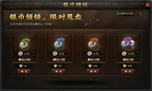 活动内容:活动期间,玩家可花费金币购买不同档次的银币礼包,等级越高每档银币越多;同时玩家每次完成庆典或国君犒赏可获得1次领先档免费银币购买次数。