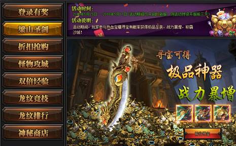 活动期间寻宝,可获得专业品牌圣剑,大幅度提升玩家战力。