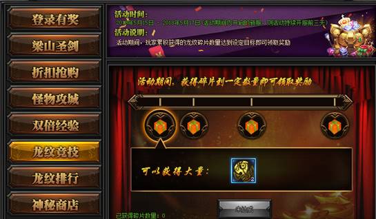 活动期间,玩家获得龙纹将会计入数量,当达到一定的数量后即可领取奖励