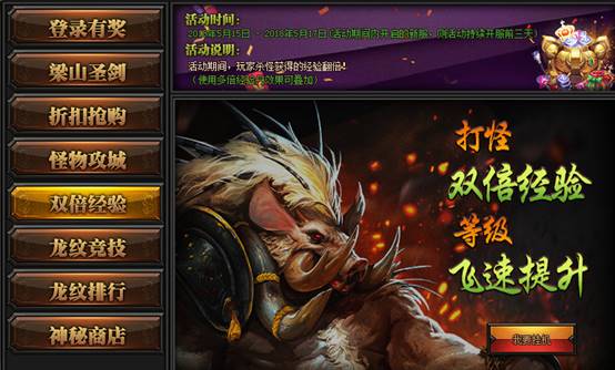 活动期间,玩家打怪获得双倍经验,该效果可与多倍经验丹效果叠加