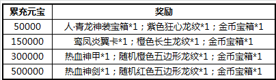 活动期间累计充值一定元宝即可领取多重豪礼。