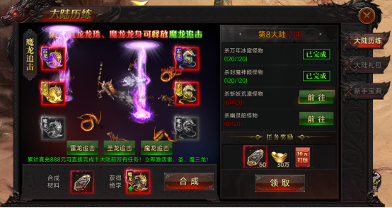 激活通关特权,直飞第7大陆后,先别着急做主线,先把每个大陆礼包领完,从大陆历练-大陆礼包把1-7大陆全部点一遍!
