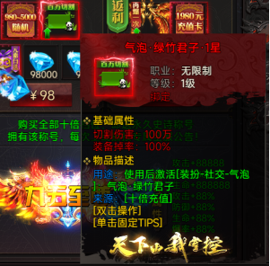 980~5000元充值卡,10倍钻石返利,高级群攻技能自选,百万切割聊天气泡:个性+打怪两不误